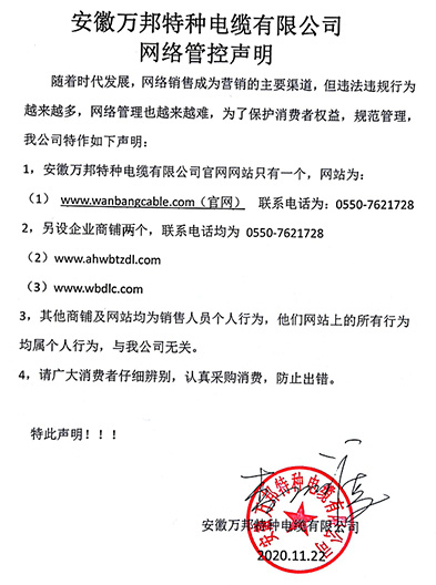 鄭重聲明:安徽萬邦特種電纜有限公司官方網站為:www_wanbangcable_com.xg7l.com.cn,除此之外無任何子網站或合作網站,其余均為假冒偽劣。電話:0550-7621728 13485756353 地 址:安徽省天長市滁州高新技術產業開發區經四路29號